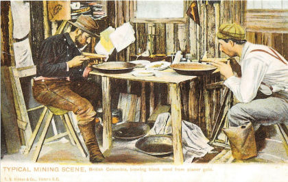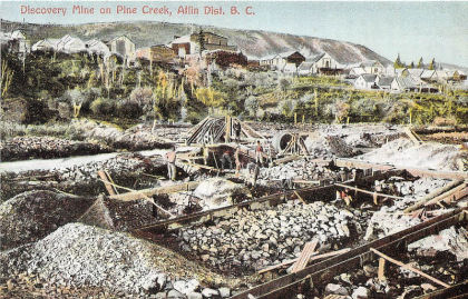 Below are a couple of old rare post cards showing Pine Creek and a couple of placer miners. These old post cards are reprints but are still unique and would make for a nice addition to someones collection. Click on either card to see an enlarged version. Prices are $8.95 Canadian each. Shipping is included.